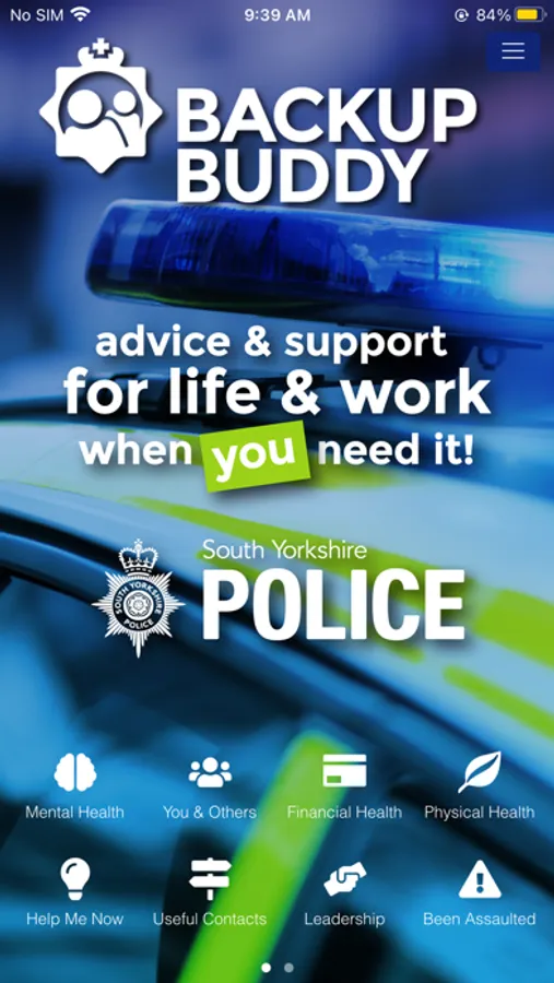 The Backup Buddy Police Support app is for police officers and staff in South Yorkshire, designed to help with mental health issues.