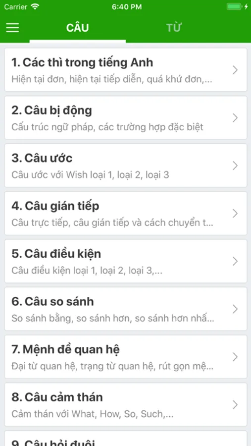 Công thức tiếng Anh - Ứng dụng giúp bạn tra cứu ngữ pháp tiếng Anh nhanh chóng trên điện thoại.