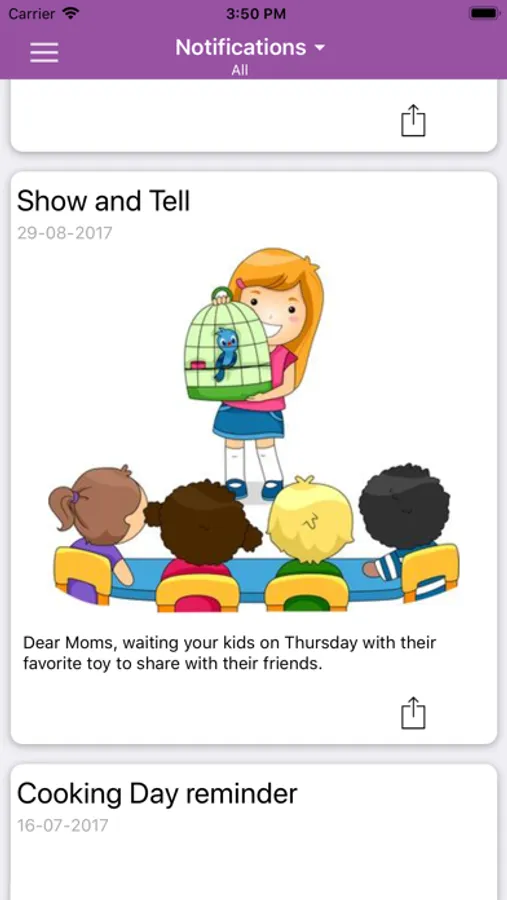 - Notify parents with the latest news, monthly newsletter, child's photos/videos, and nursery rhymes. They can share them too