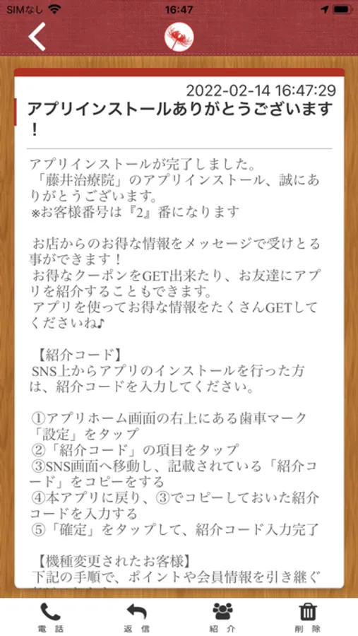 藤井治療院のアプリをSNSを通じてお友達に紹介する事ができます。