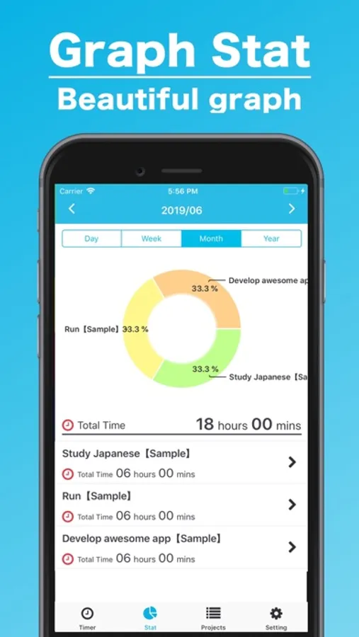 This timer app let you understand what you spend time! For example, you can measure time for "Study Japanese", "Developing mobile app" and "Exercise" and more! Let's accumulate time and feel good!