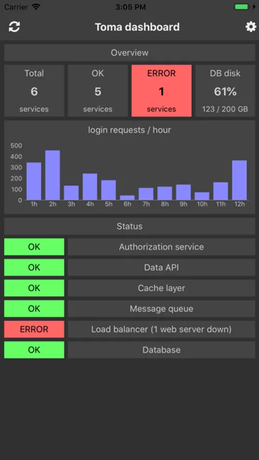 Toma dashboard is mobile app that turns your API data into dashboard. App will issue HTTP GET request to defined API endpoint address and create dashboard tiles from your JSON data response.