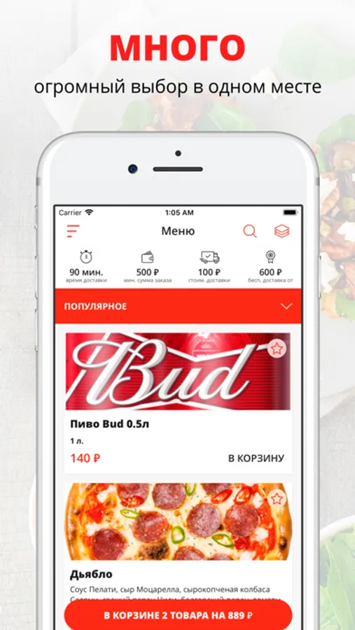 · бесплатную упаковку в специальную термопосуду для горячих продуктов;