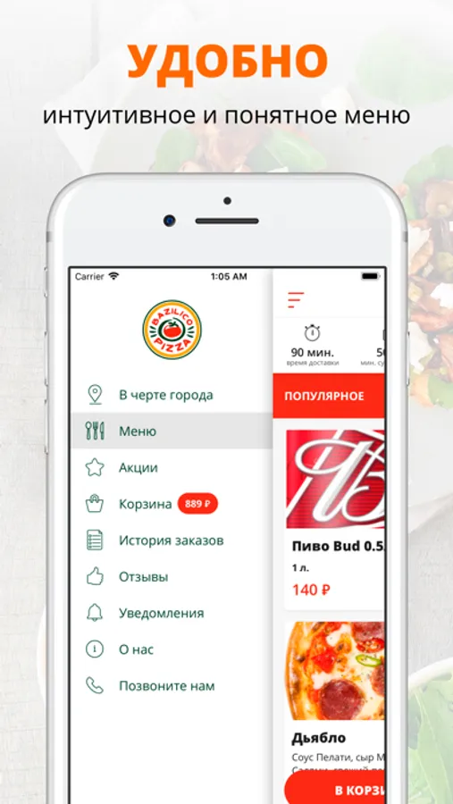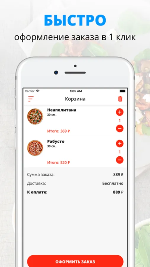 В Базилико Пицце Вы можете заказать бесплатную доставку пиццы в Уфе, если стоимость Вашей покупки больше 500 рублей, и заявка была подана: