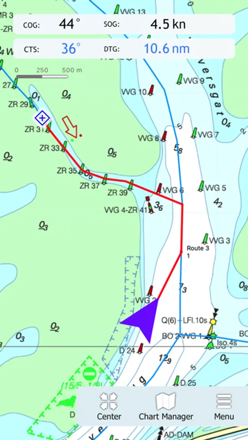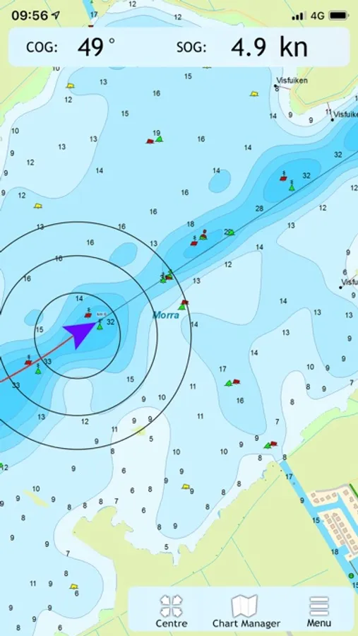 - Download the chart of your sailing area and check the current depths, buoys and other nautical information.