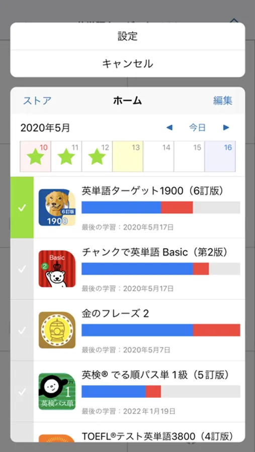・単語学習の結果やマーカーも一覧で確認