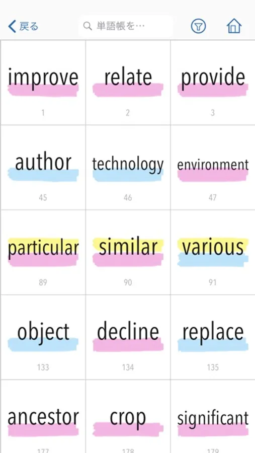 ・単語帳での絞り込み