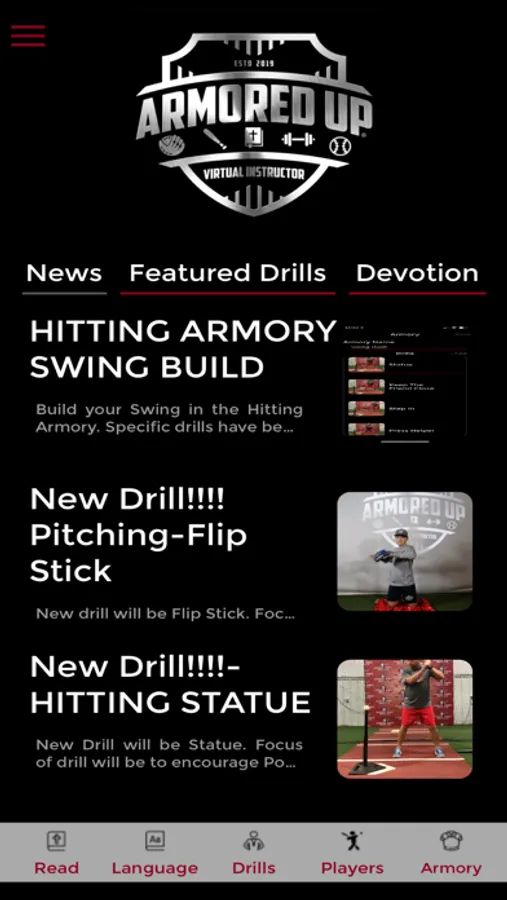 The Armored Up App allows you access to the specific language and drills along with a Drill Armory that is focused on areas of the game which need the most polishing. The Armory gives both a brief over view and provides visuals that bring the drills to life. Our hope is that players/users can maintain a stronger understanding by seeing it, reading it and then performing it.