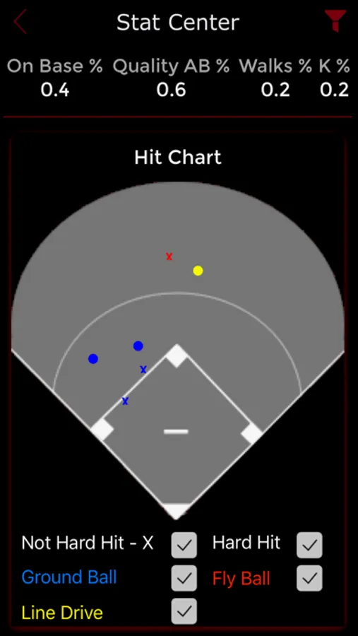We hope to elevate plate discipline as well as encourage aggressiveness. With the understanding of what he/she may be seeing during live at bats it will make the game more enjoyable and allow their talent to shine. The Stat Center will give visualization through spray charts (Line Drives, Fly Balls, Ground Balls) along with (Hard Hits and Not Hard Hits).