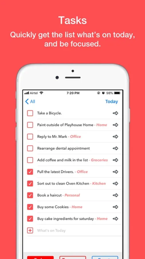 Mentioning # - Planning your days at the moment tasks came to your head. For example: “Prepare Gifts for Mark’s #Birthday” will set a task under your Birthday category on a selected date. If Birthday Category not available then it will create a new category as Birthday category.
