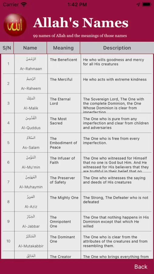 99 names of Allah with meanings & descriptions,