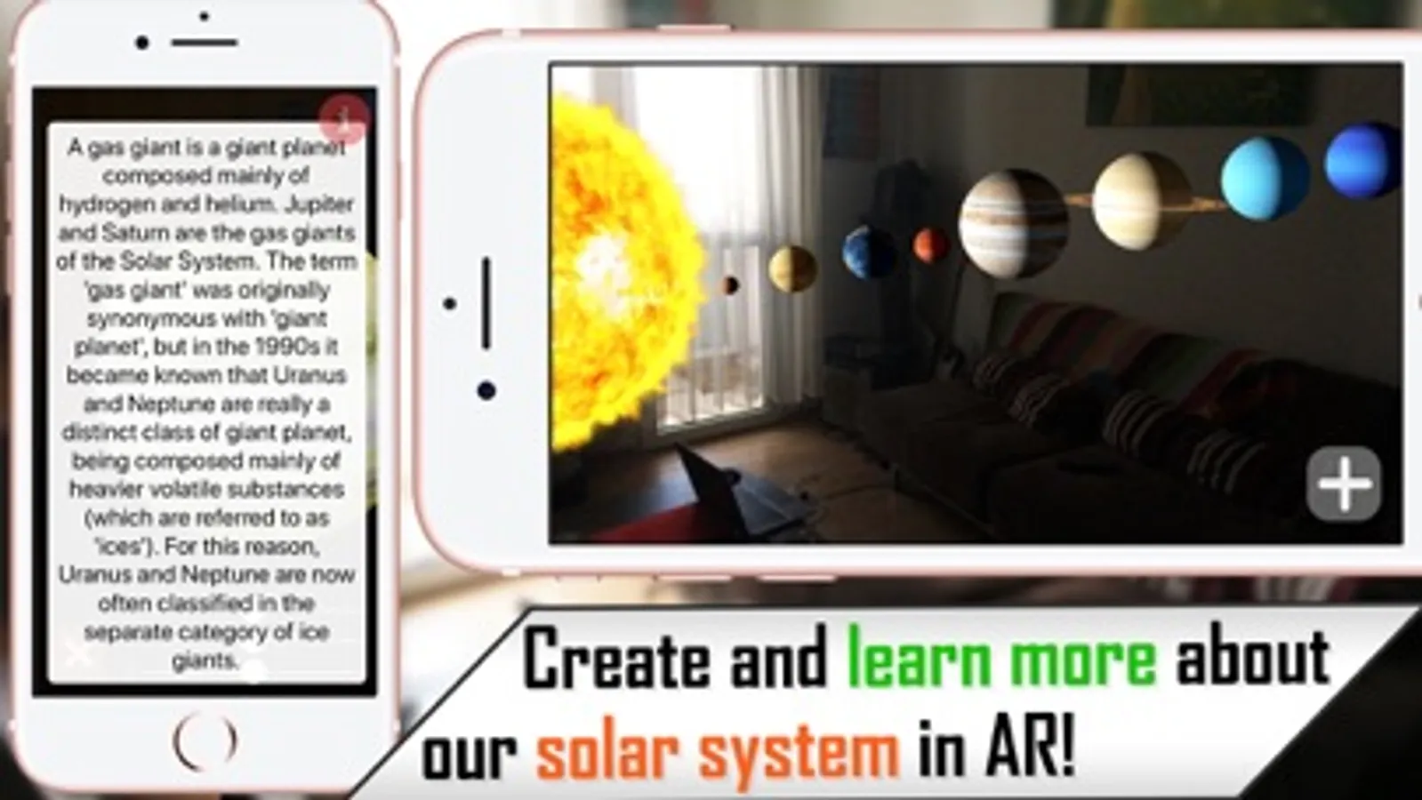 • Solar System Builder AR brings a great opportunity for parents and educators alike to get kids interested in the inner workings of our grand universe. Visualize how gravity effects all things around us, learn how stellar objects orbit each other and learn useful information about all the different types of bodies available in the cosmos, all while providing a fun and engaging experience.