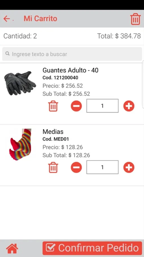 Permite la carga de los pedidos de los clientes del vendedor, consultar stock y listas de precios.