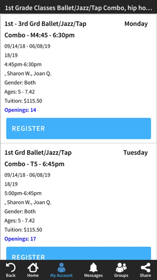 - Have a class in mind? Search by program, level, day, and time. You can register or even put yourself on a wait list.