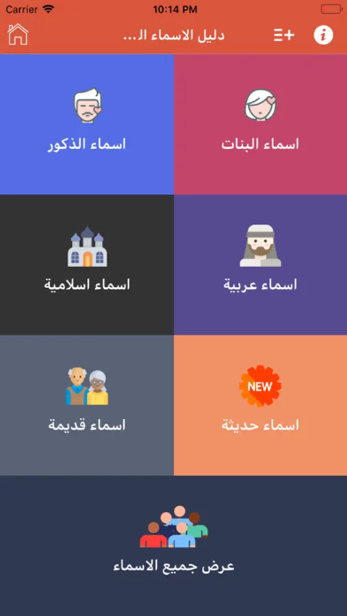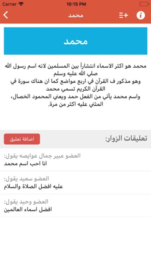 - صفحة لكل اسم تحوي تفاصيل الاسم ومعناه.