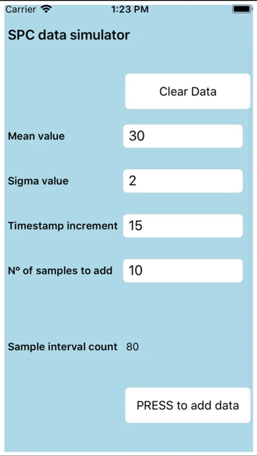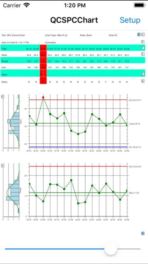 The user can customize the SPC chart and control limits using built-in setup forms. Both auto-calculated and manually set control limits are supported. The user can manually input and edit sample data from within the program. The user can also import sample data from a CSV (comma separated value) file. The entire chart setup, and data, can be saved on the host device so that they are easily accessible the next time you use the app. You can even set the current setup to be auto-loaded the next time the app starts.