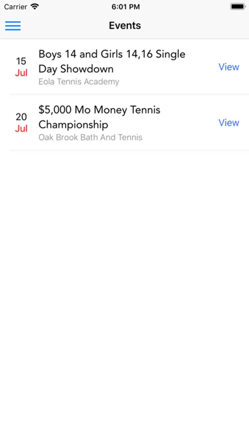 -View schedule of all upcoming tournaments and events