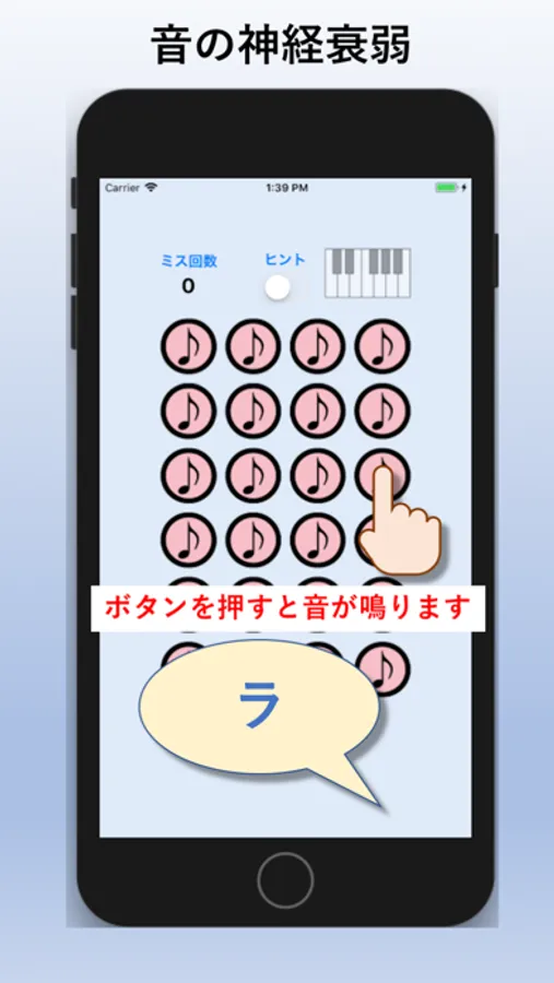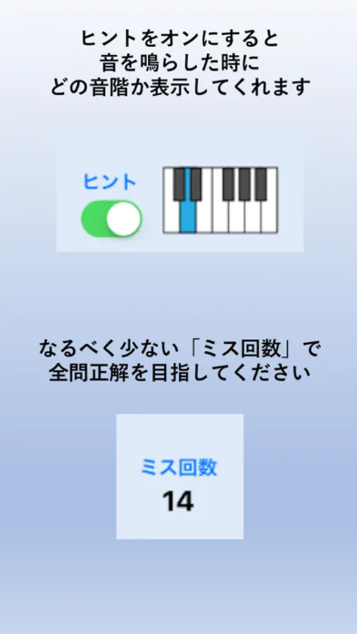 「ヒント」ボタンを押すと、どの音が鳴っているかも確認できます。