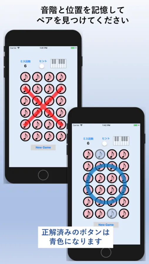 神経衰弱の要領で、ド〜シ(半音階含む12音)の音を当てていくゲームです。