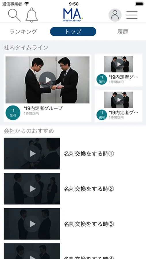 モバイルアビリティは、ビジネス人材として 求められる基本的知識・所作 を動画を通して“まねぶ”ことができるサービスです。