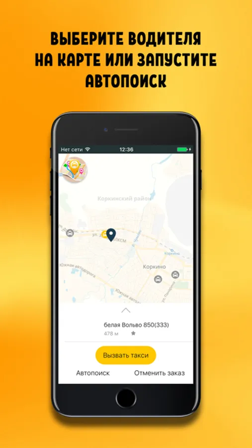 Замените общение с диспетчером на одно нажатие на кнопку. Запустите автопоиск, находясь территориально в городе Коркино, а мы подберем для вас свободный автомобиль. Или же выберите подходящий автомобиль из списка свободных или на карте.