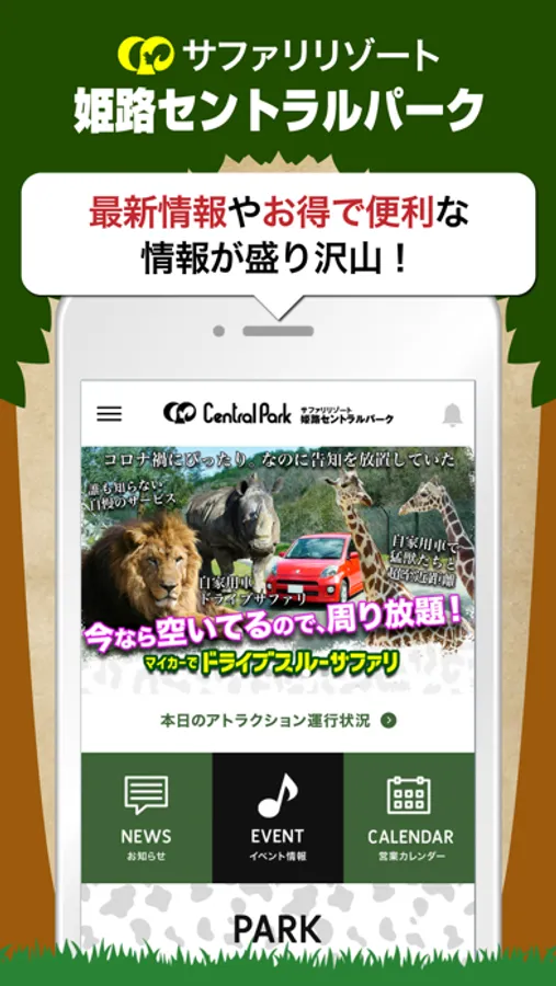 放し飼いしたライオンやトラ、チーターなどを車窓から見学できるドライブスルーサファリや、歩いて間近に動物達を見るウォーキングサファリにロープウェイに乗り空から動物を眺める「スカイサファリ」と宙吊りコースター・ディアブロなど数々の絶叫マシンで遊べる遊園地があります!