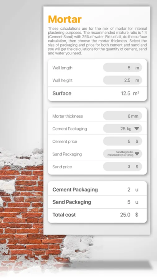 The ultimate Handyman in your pocket app you will ever need. Designed for beginners, but also experienced builders, craftsmen, construction workers, engineers and DIY handymen. Our app will give you valuable information about the necessary quantities and price for doing different construction, internal and other works. Calculate material costs and save money!