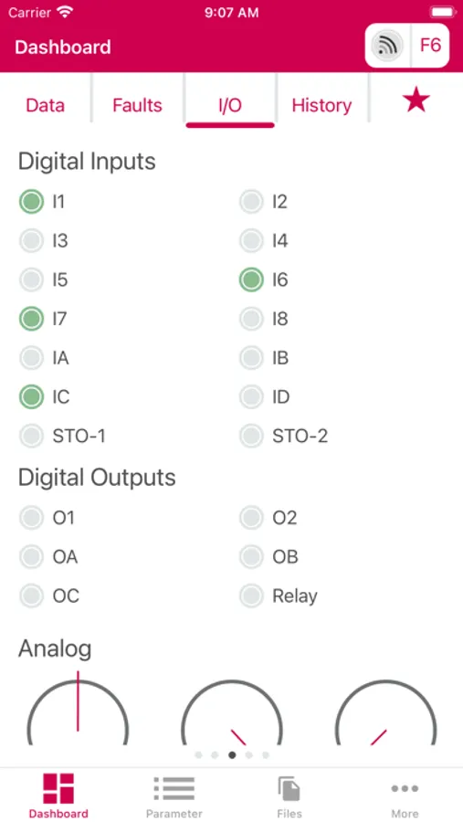 - Diagnosis: Clear dashboard for monitoring current status values of the drive, list of occurred errors, status of I/Os, operating history