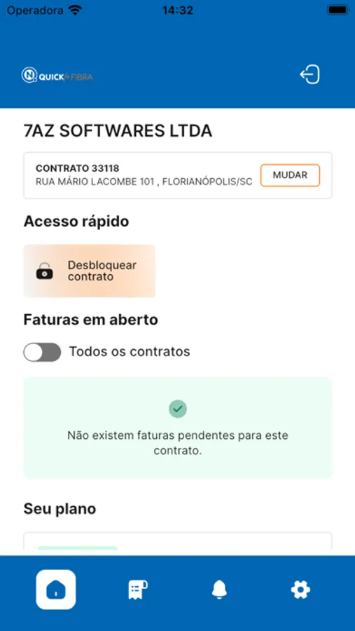 Com o aplicativo QUICK/+FIBRA, você tem acesso a sua fatura, à 2ª via de conta e código de barras, consulta de seus atendimentos, consumo de internet e muito mais. Agora você tem o autoatendimento em seu celular.