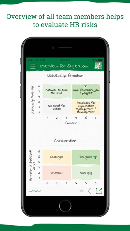 Be a well-prepared team leader who has a detailed overview of their team. Analyze your direct reports, their potential and their need for development. The Talent Portfolio will help you take the right strategic decisions as a manager.