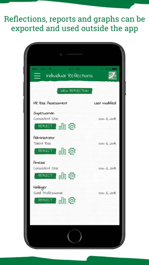 • Export your risk analysis, development plan or talent portfolio reports and use them for presentations or meetings.
