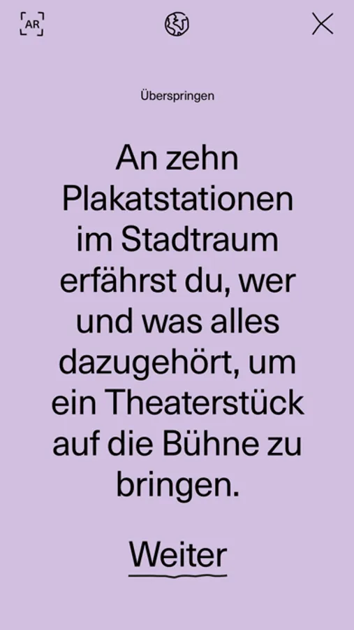Die »Theater Erlangen App« präsentiert Vorschau-Trailer und Augmented-Reality-Inhalte für Erwachsene und Kinder sowie Informationen zu unseren Theaterprogrammen und weiterführenden Inhalten: Interviews mit Theaterexpert*innen, Regisseur*innen, Blicke hinter die Kulissen, allgemein Wissenswertes über das Theater Erlangen und vieles mehr.