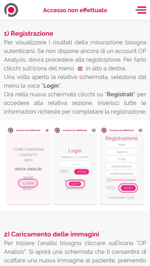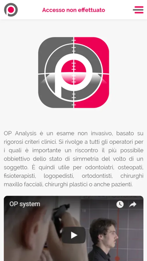 OP Analysis permette una analisi, secondo criteri osteopatici, delle principali aree del volto, per area, gradi si rotazione e forma di alcuni altri propri indicatori. Relazionando tutti questi parametri si ottiene un dato complessivo che, rapportato a 100(=la totale simmetria), ci indica in maniera obbiettiva uno stato di simmetria rilevato al momento dello scatto. A distanza di tempo, dopo terapie, interventi ortodontici, riabilitativi, trattamenti osteopatici, miofunzionali o altro, è consigliato ripetere l’esame e raffrontarne i risultati. È così possibile interpretare sia il dato complessivo che i singoli elementi nella loro progressione o adattamento nel tempo, assicurando quindi l’andamento delle terapie e il loro effetto sul soggetto.