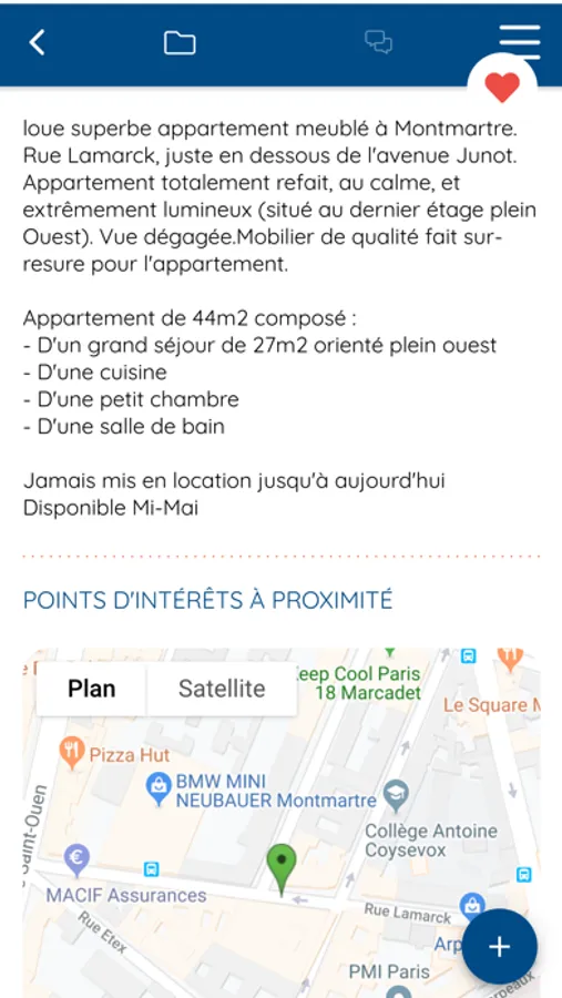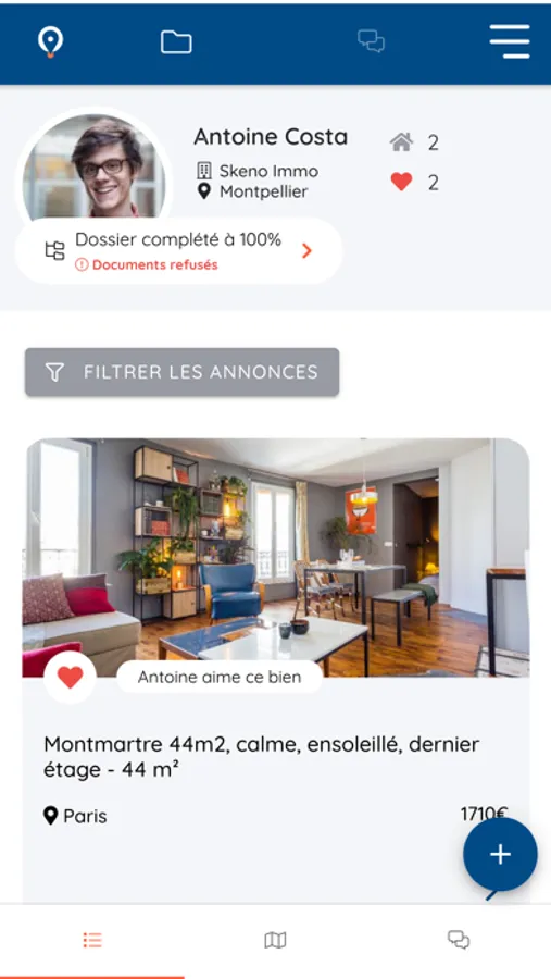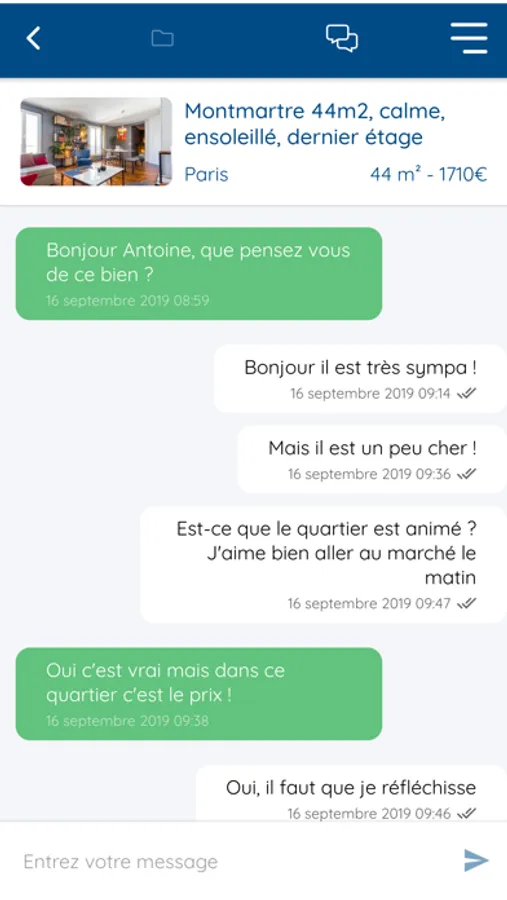 - Possibilité de discuter au sein de l'application via le chat général ou sur un bien en particulier