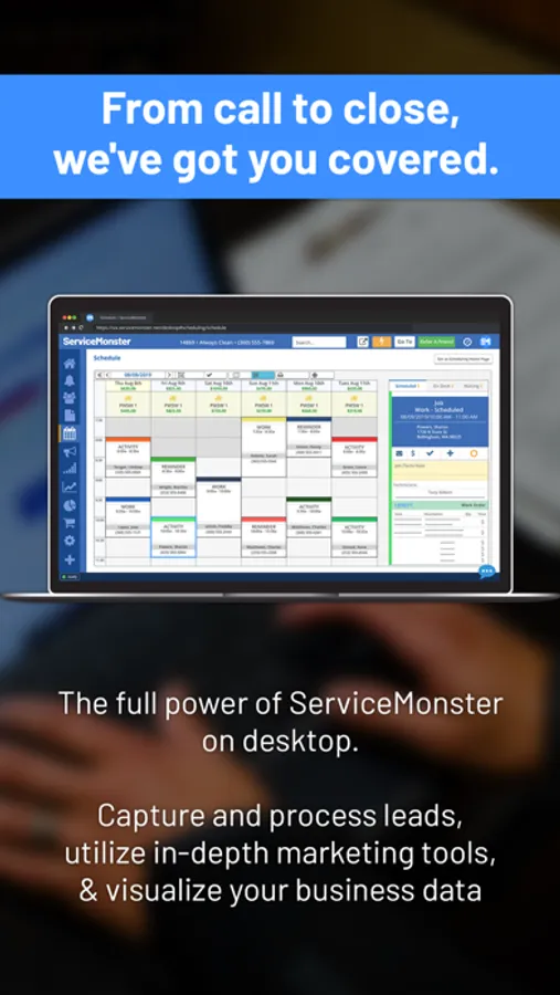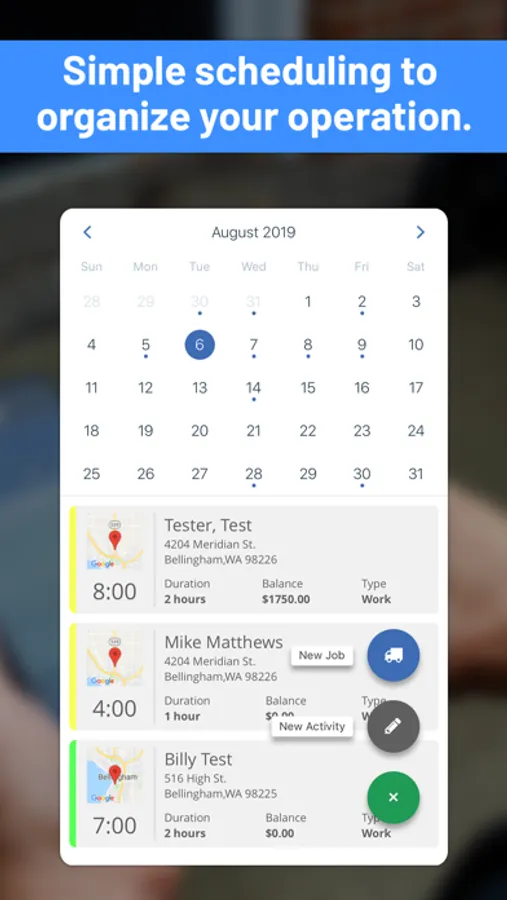 Schedule jobs, take notes, create invoices, process payments, and manage your technicians and their routes. Business management simplified.