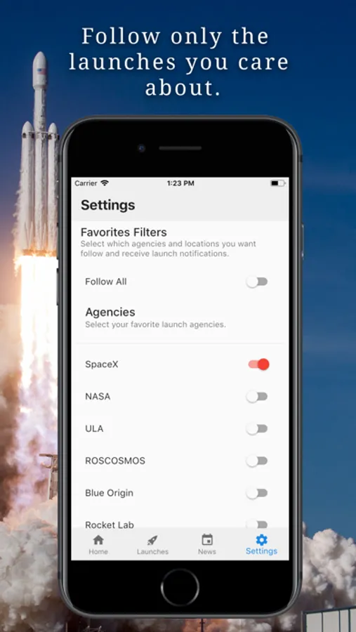 Get updates and notifications for rocket launches from SpaceX, NASA, ULA, ROSCOSMOS, ISRO, and many more!