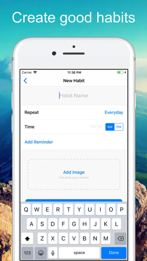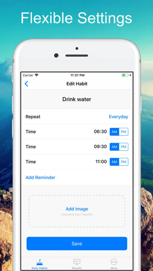 The app is fully customizable - you can name your habit, choose a time and notifications type.