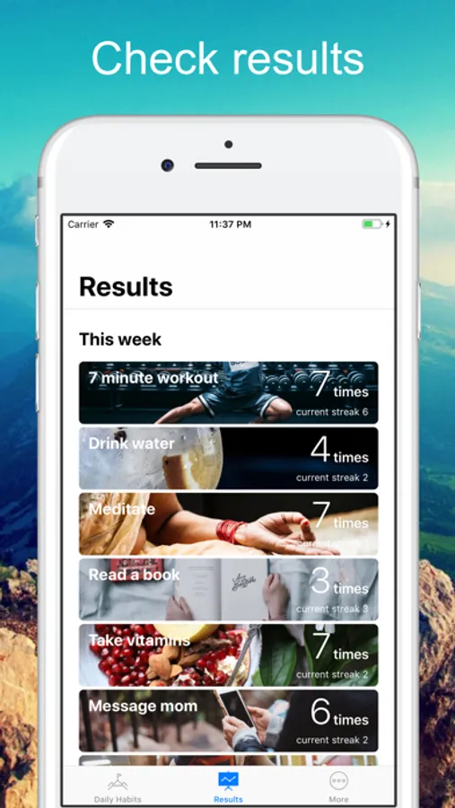 Habits is a free tool that helps you build a routine of life-changing habits. Set personal goals, track your progress, and motivate yourself to achieve new heights!