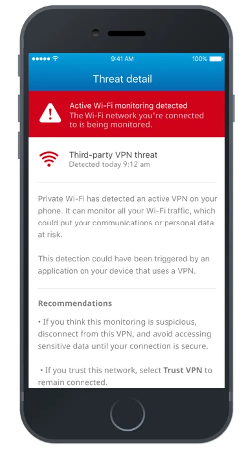 Private Wi-Fi protects a user while using un-encrypted Wi-Fi hotspots. With Private Wi-Fi VPN, the app will provide a highly secure connection when connected to an un-encrypted hotspot. Wi-Fi alerts will alert a user when they are connected to a Wi-Fi hotspot that is under attack. Privacy Policy: https://about.att.com/sites/privacy_policyTerms & Conditions: https://www.att.com/privatewifiterms Subscription Information:► Your subscription period for the Private Wi-Fi VPN subscription is one month and unless auto-renew is turned off, will automatically renew at the end of each subscription term. Your payment method will be charged through your iTunes account at the then-current subscription price► You can turn off auto-renew through your iTunes account settings, but must do so within 24 hours before the end of your current subscription term to avoid renewal► Subscription automatically renews unless auto-renew is turned off at least 24-hours before the end of the current period► Account will be charged for renewal within 24-hours prior to the end of the current period* Private Wi-Fi VPN Subscription - $1.99/month► Subscriptions may be managed by the user and auto-renewal may be turned off by going to the user's Account Settings after purchase► Any unused portion of a free trial period, if offered, will be forfeited when you purchase a subscription.