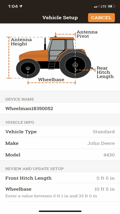 When setting up Wheelman on your tractor, the Whirl mobile app will guide you to: