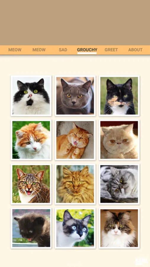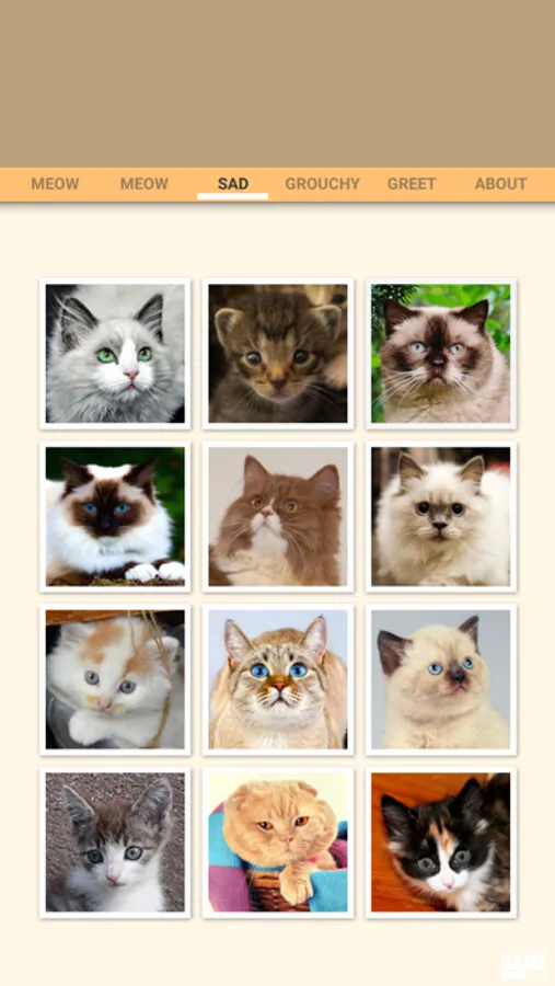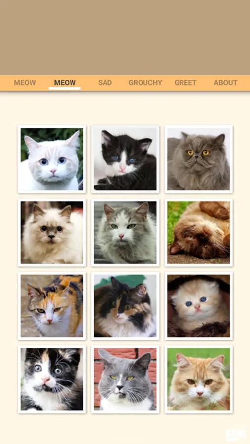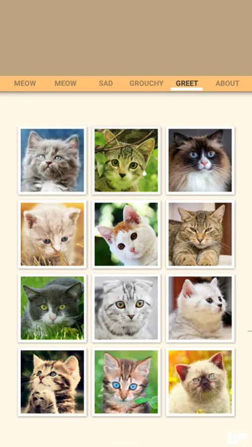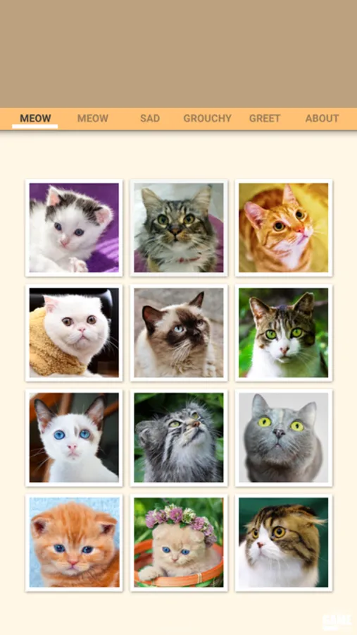 Do you enjoy hearing the funny meow voices that cats and kittens make? Or you don't have pets and you miss the sounds of cats and kittens? Then download this app and listen to variety of selection of sound of felines . Since this is an app, you can listen to the sounds on the go, from the phone on your pocket (also playable on tablets). Just tap a tile and listen to variety of cat voice and meows.