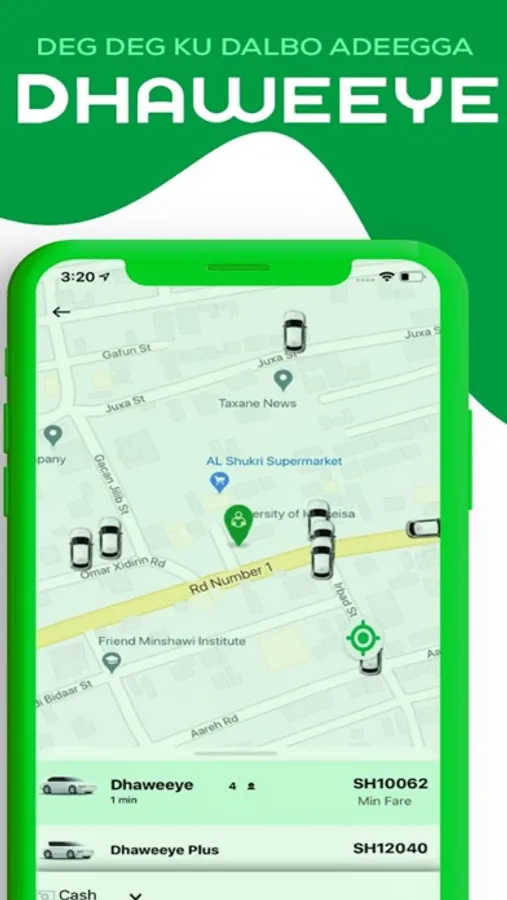 1-Macaamiilka ayaa dooran kara meesha uu rabo in la geeyo , kadib ayuu arki doona masaafada lagu tagi karo meeshas iyo lacagta lagu geynayo , kadib ayuu dooran karaa nuuca gaari u rabo inuu raaco hadii ay online yihiin kadib waxuu ku xirmi doona darawalka ugu dhaw ee dhaweeye.