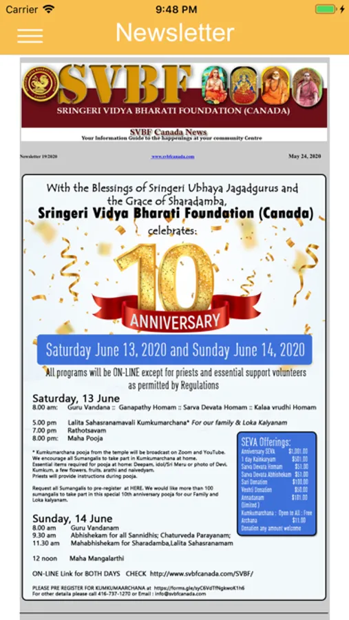 SVBF Canada is an overseas affiliate of Sri Sharada Peetham, Sringeri, India and promotes teachings of Adi Shankara. SVBF Canada also organizes cultural programs for the community and encourages scholars to undertake research studies in the areas of interest to the community.