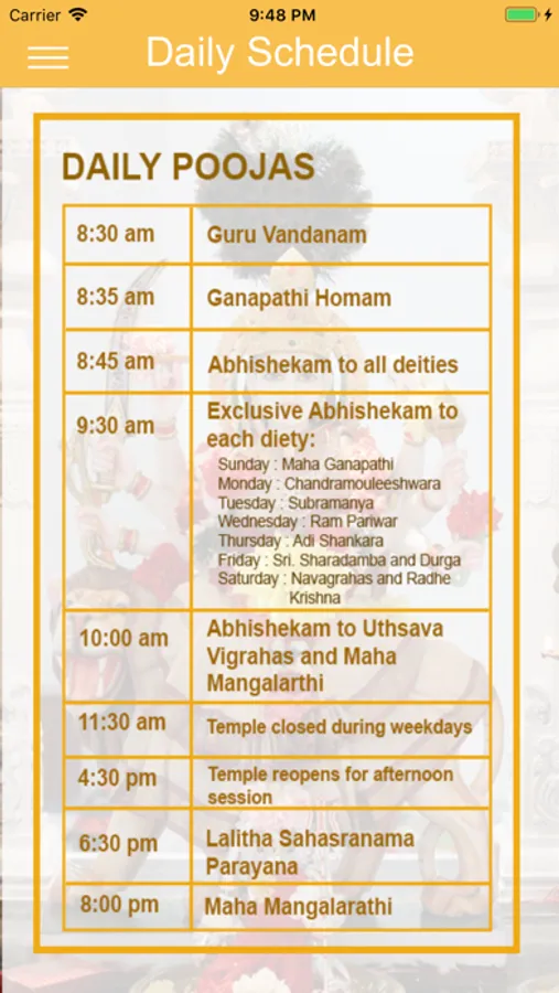 - Manage upcoming events by syncing your calendar with the temple calendar