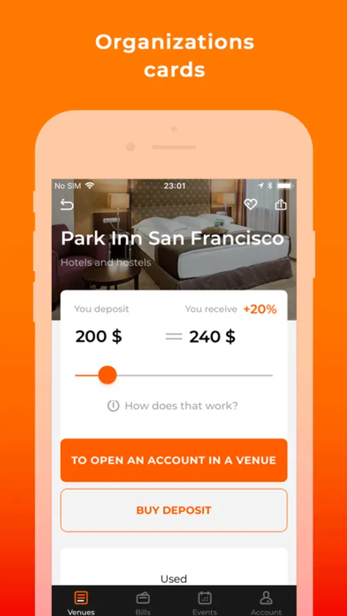 Imagine a situation that almost everyone has faced: you give a discount card to your friend and he or she, in turn, shares some of the savings with you. This is Velvet. You put money on a deposit to a venue, and it provides you with a bonus, which can be used for paying for venue services and in addition can be sold to other users at your price.