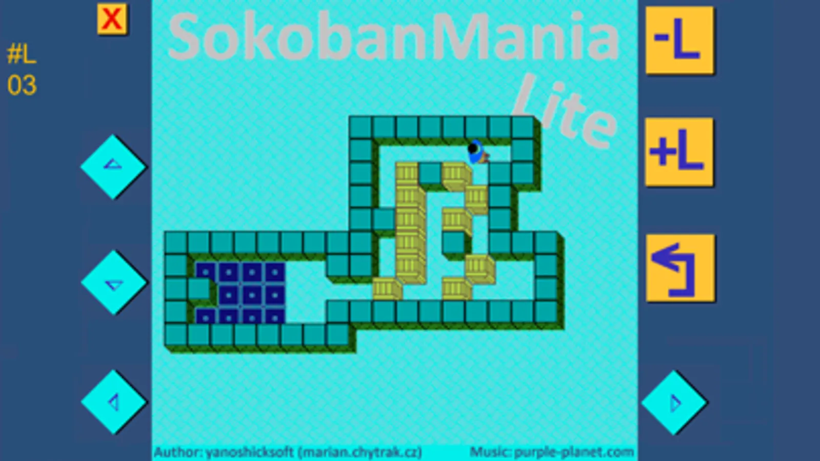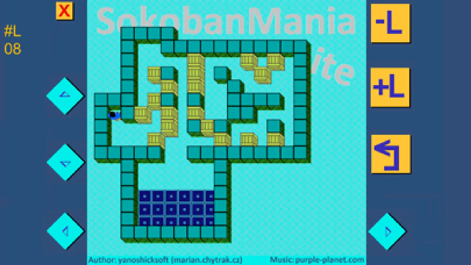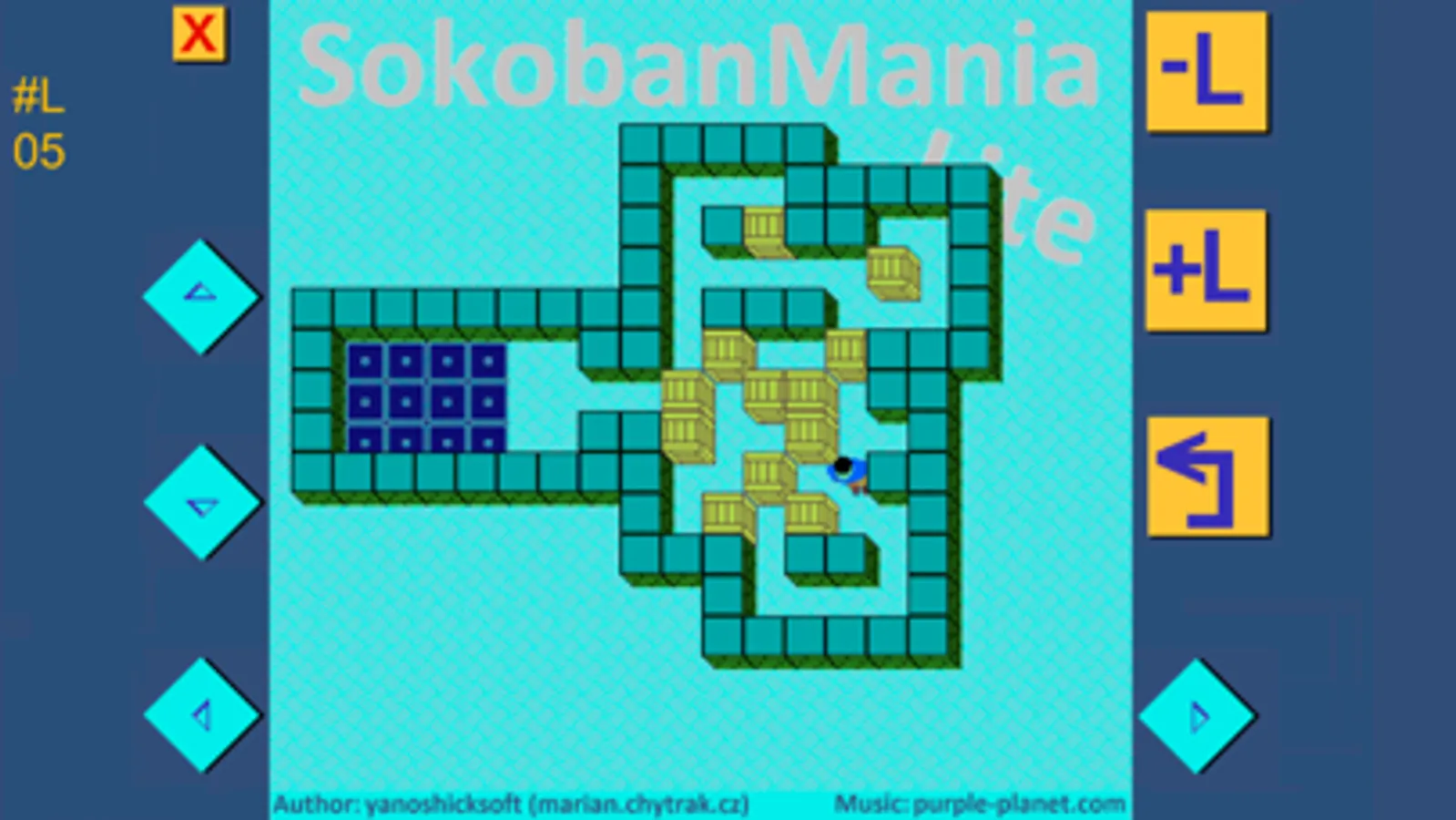 Logic game Sokoban. Use little bit your brain and help the storekeeper move the crates to the right place. Free 20 levels. So good luck.