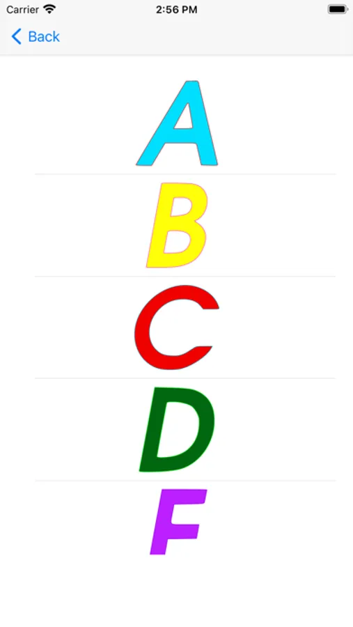 This app can be used to learn English letters and alphabetical order.