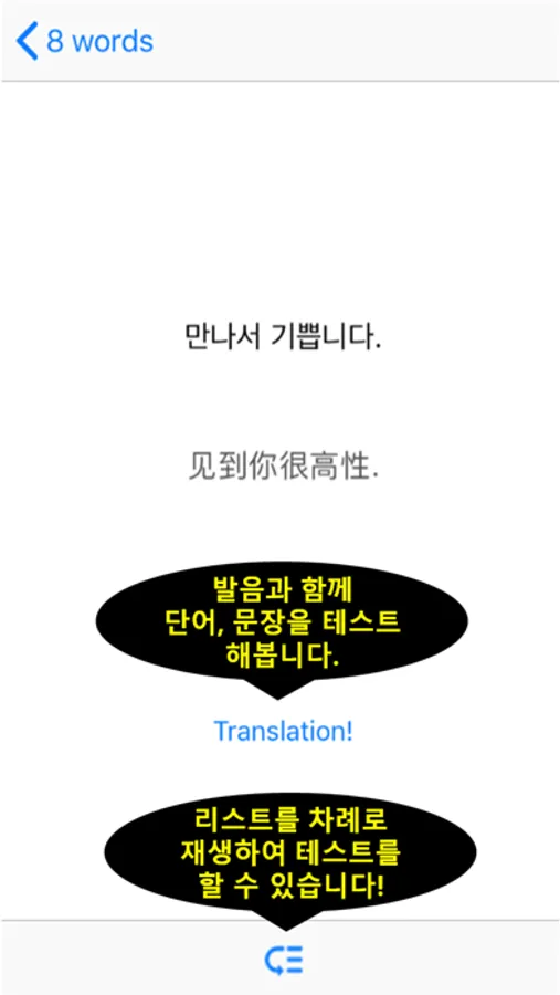 발음 기능을 제공하여 원어민들이 알아 들을 수 있는 소리로 연습할 수 있습니다!