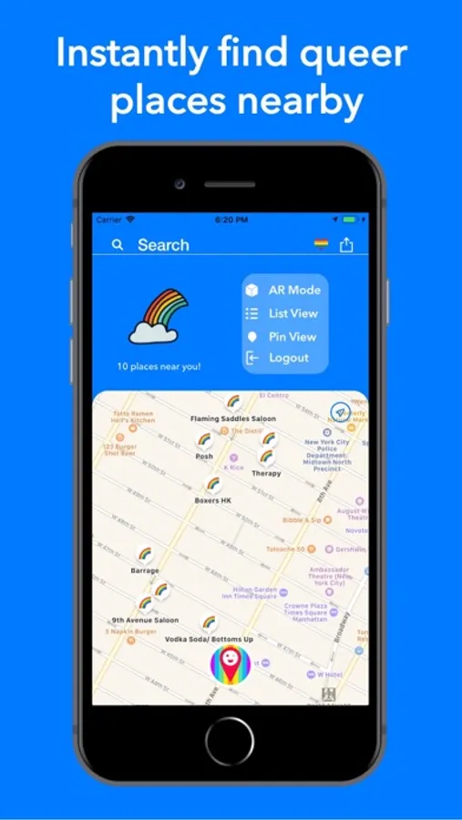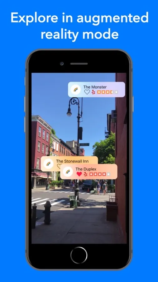 The app helps you discover queer areas around you, with one-tap access to discovering friendly places nearby.