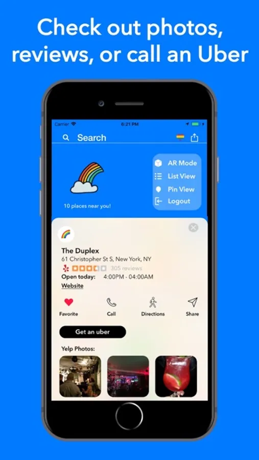 Explore your world in 3 different modes: List View, Pin View, or Augmented Reality Mode!